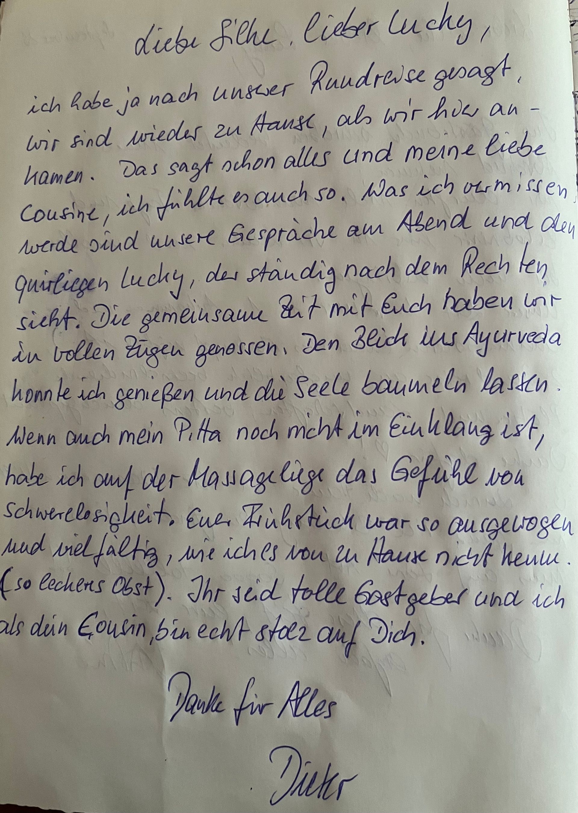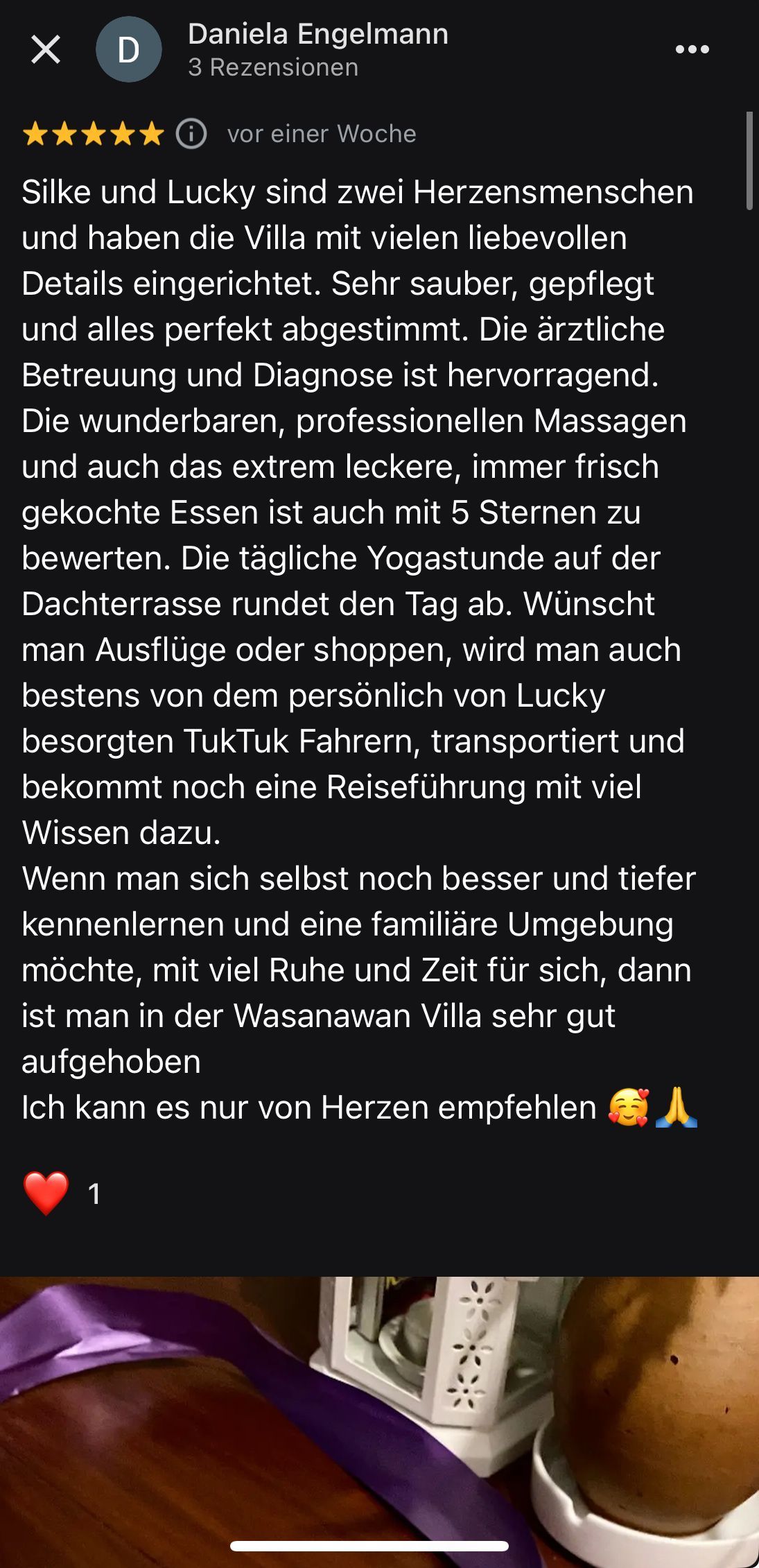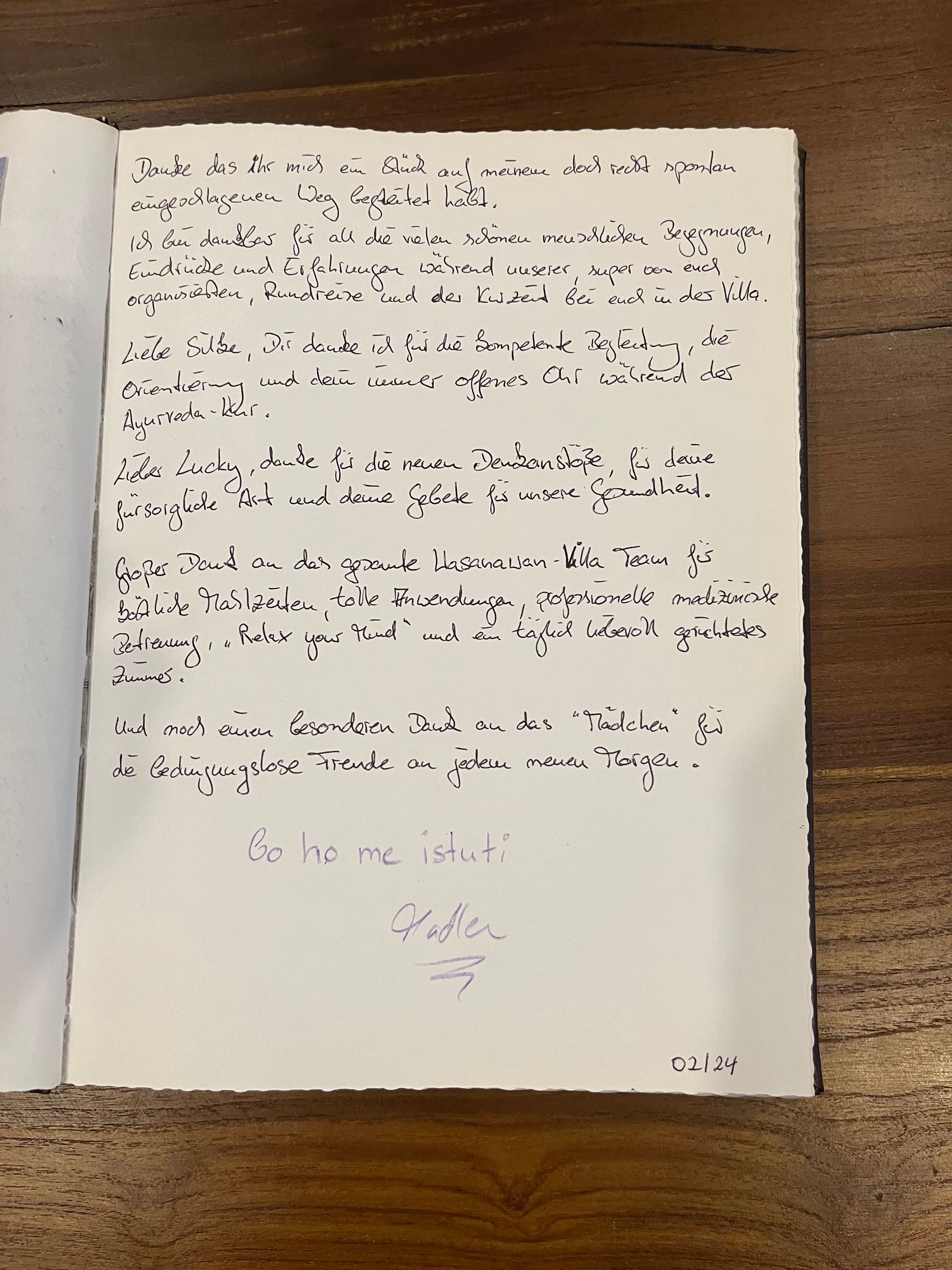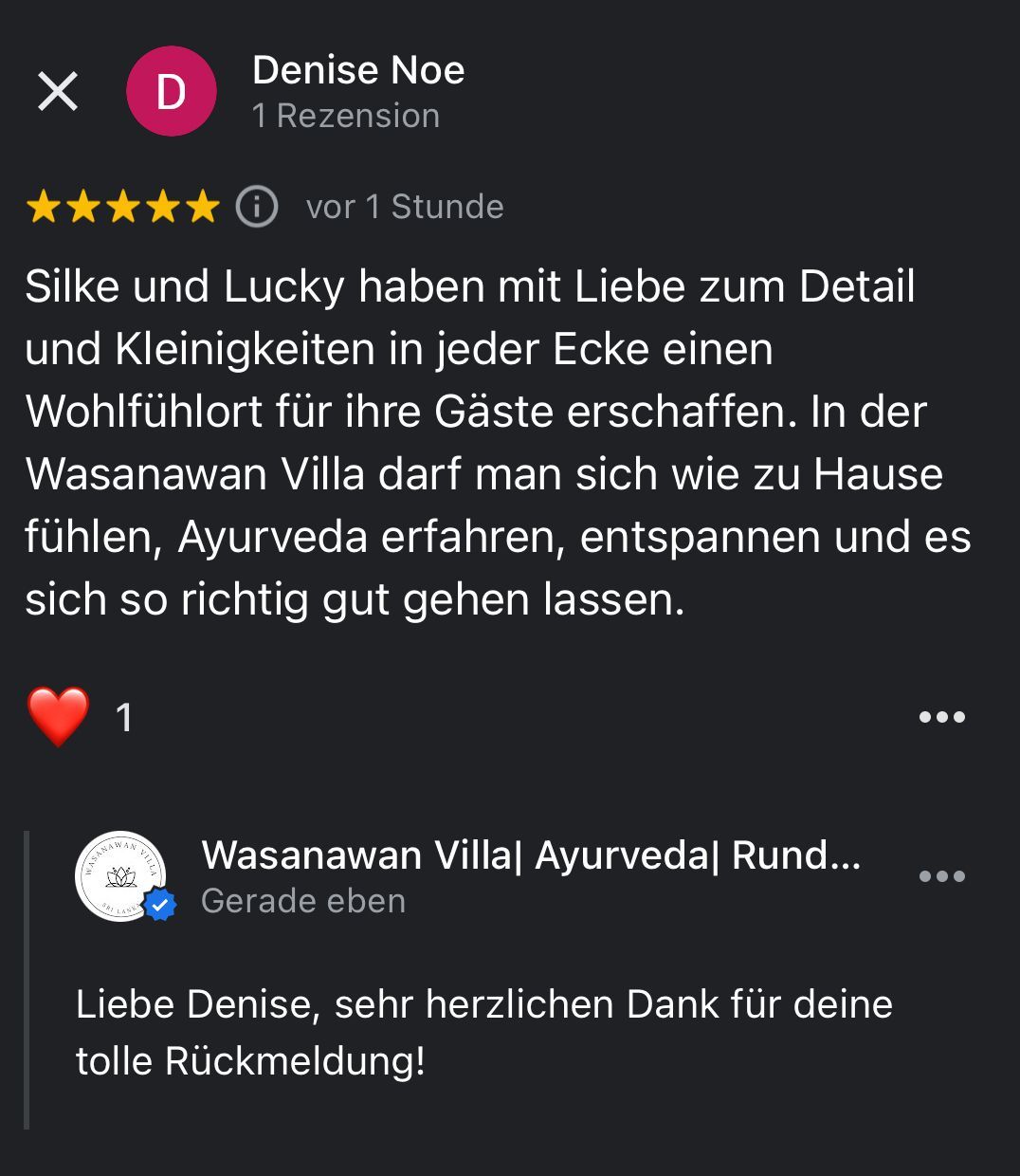 Many thanks also to Annemarie, Katja and Karin for their testimonials from the summer of 2024, about 6 months after their Ayurvedic treatment at the Wasanawan Villa...